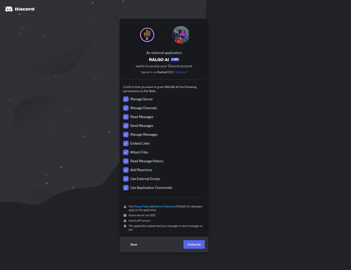 Add RALGO AI to your server
